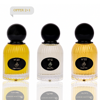 • Identity (50ml): Your signature statement. Bold, unforgettable, and uniquely you. This is the scent of confidence—a complex profile crafted to mark your presence and express your truest self.